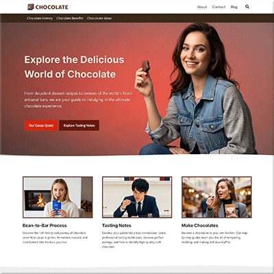 done for you website packageChocolate is a universally beloved treat, creating a massive, evergreen market that never goes out of style. As food and drinks is a massive market, you can tap into a passionate global audience of connoisseurs and home bakers who are always excited to discover new artisanal brands, explore decadent recipes, and learn about the world of gourmet chocolate.