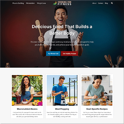 Done for You Cooking for Fitness Website PackageReceive a macro-focused, multi-page ready-to-go website template, expertly built for the health-conscious on the WordPress system. This is a complete nutritional resource, structured to help you share fitness recipes, meal plans, and build a dedicated community.